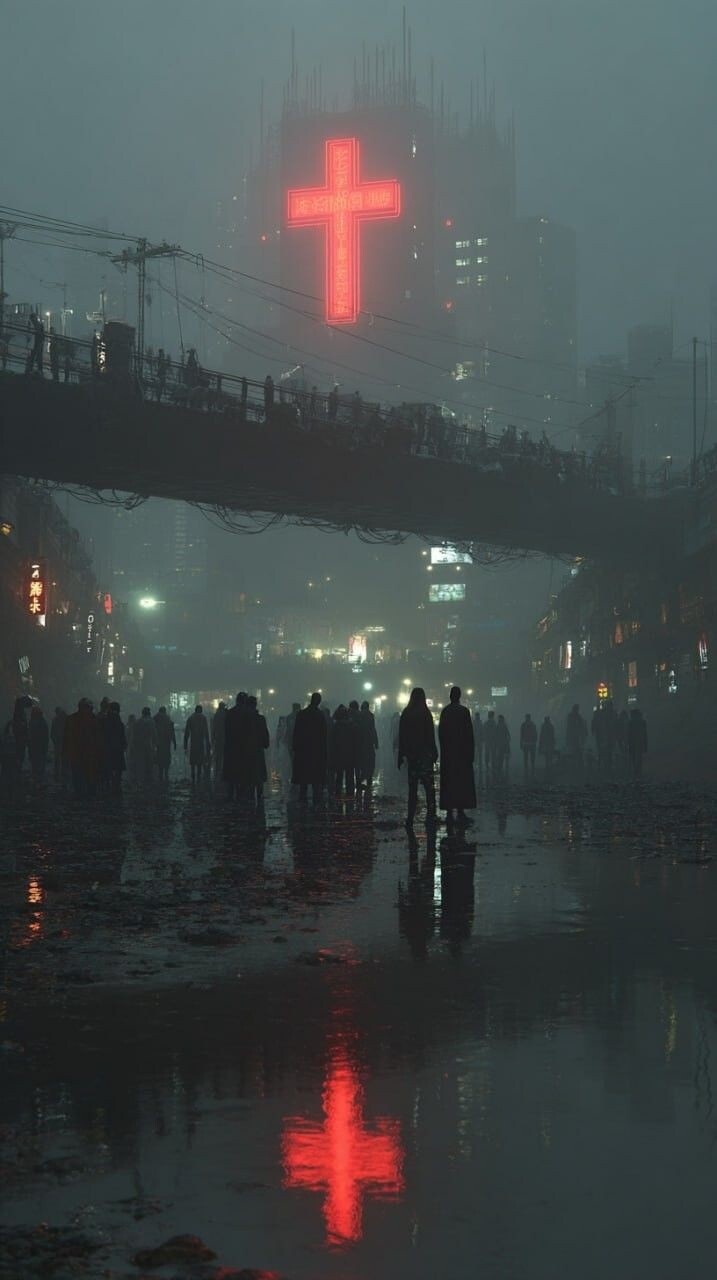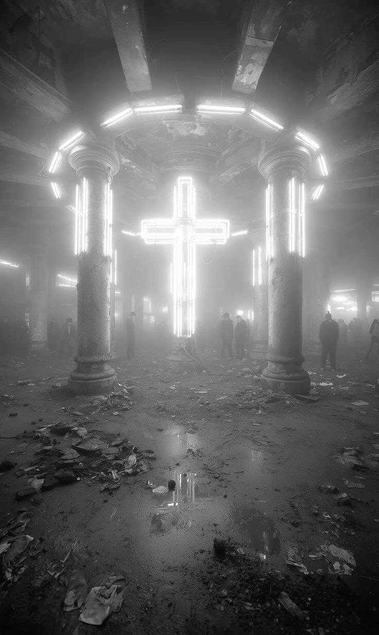 Вход в кибер-церковь это всегда шок. Ты проходишь через гермодверь, и внешний мир, воющий токсичными ветрами, перестает существовать. Первое, что встречает тебя в притворе - вспышка холодного, почти хирургического света от голографических икон.