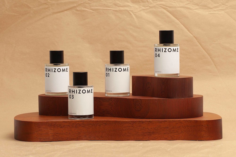 Прототипы первых парфюмерных вод бренд разработал еще в 2016 году, но официальный запуск прошел только на выставке Esxence 2019-го совместно с партнером, итальянским дистрибьютором Release. В униформных минималистичных флаконах появились пряный Rhizome 01 с кумином и пачулями, древесно-кожаный Rhizome 02, остро-цитрусовый Rhizome 03, Rhizome 04 (мускус, уд, ветивер) и ориентальный Rhizome 05, который марка описывает как «захватывающее путешествие сквозь классику парфюмерии». В начале 2020-го Rhizome представила лимитированный тираж ароматических свечей с отдушками, повторяющими композиции 02 и 05, а в мае объявила о старте сотрудничества с парижской Galeries Lafayette.
