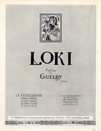 Loki Gueldy, выпущенный в 1920 году, классифицируется как аромат для женщин. Над ним работали Жюльен Виар, А. Сержен, Ле Лорен и Де Сержи.