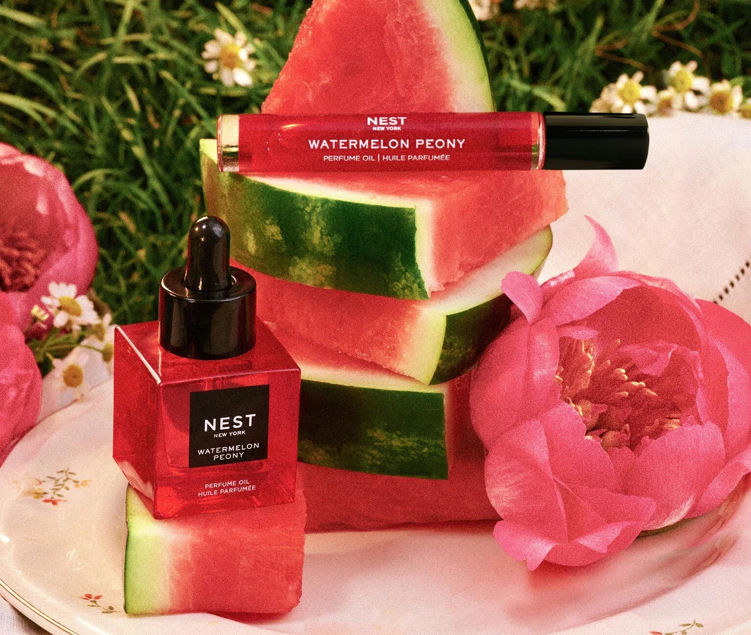 Нью-йоркский бренд Nest показал цветочно-фруктовый аромат Watermelon Peony в формате парфюмерного масла. Вместе с ним марка предлагает «погрузится в атмосферу пышного цветочного сада с нотами пиона, освежающего арбуза, хрустящей груши и лёгкими оттенками лимона». Также отмечено, что ольфакторным референсом для ноты пиона стали цветки сорта "Coral Charm". Основа для аромата также содержит масло баобаба, оказывающее на кожу ухаживающее воздействие.