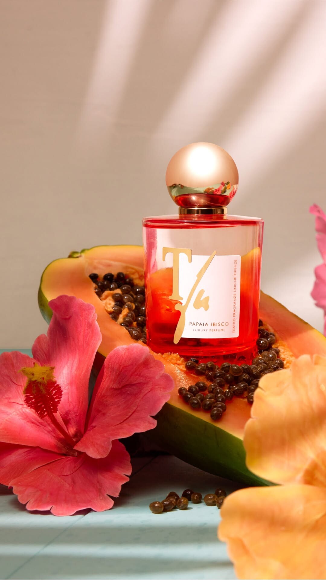 Итальянский нишевый бренд Teatro Fragranze Uniche, представленный в сети магазинов Золотое Яблоко, показал новый аромат Papaia Ibisco. Композиция, сочетающая в себе фруктовые и цветочные аккорды, олицетворяет «тропическое путешествие, воплощённое с особой элегантностью и яркой индивидуальностью».