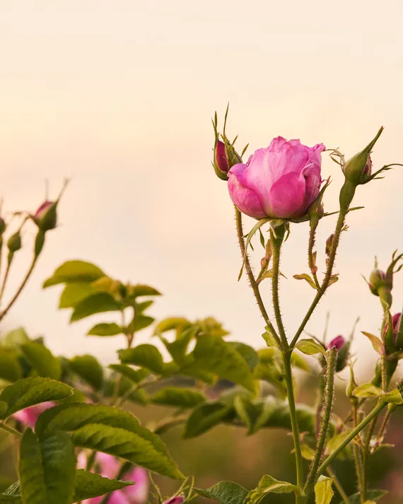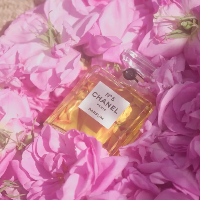 Для Chanel N°5 выращивают особенный сорт розы — центифолию. Ее еще называют грасской, или майской, розой. У нее тонкий медовый аромат с нотами сухой зелени. Парфюмер Chanel Оливье Польж рассказывает, что цветы начинают пахнуть особенно интенсивно вечером и ночью, потому собирать их нужно по утрам. Сборщики работают только в первой половине дня и собирают розы на протяжении трех недель. Каждый работник собирает примерно 5 кг роз в час (1 кг — это примерно 350 цветков).