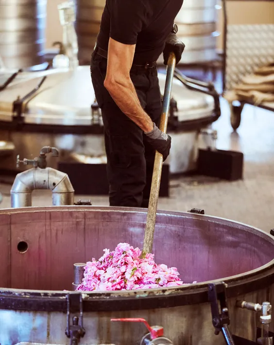 После сбора розы помещают в специальную жидкость, чтобы они "отдали" аромат. После из нее изготавливают конкрет — концентрированную ароматную субстанцию. Чтобы получить всего 1 килограмм конкрета розы, нужно собрать 400 килограмм цветов! Уже из конкрета делают абсолю розы – вещество, которое входит в состав Chanel N°5. Всего лишь для одного флакона требуется не одна сотня цветов.