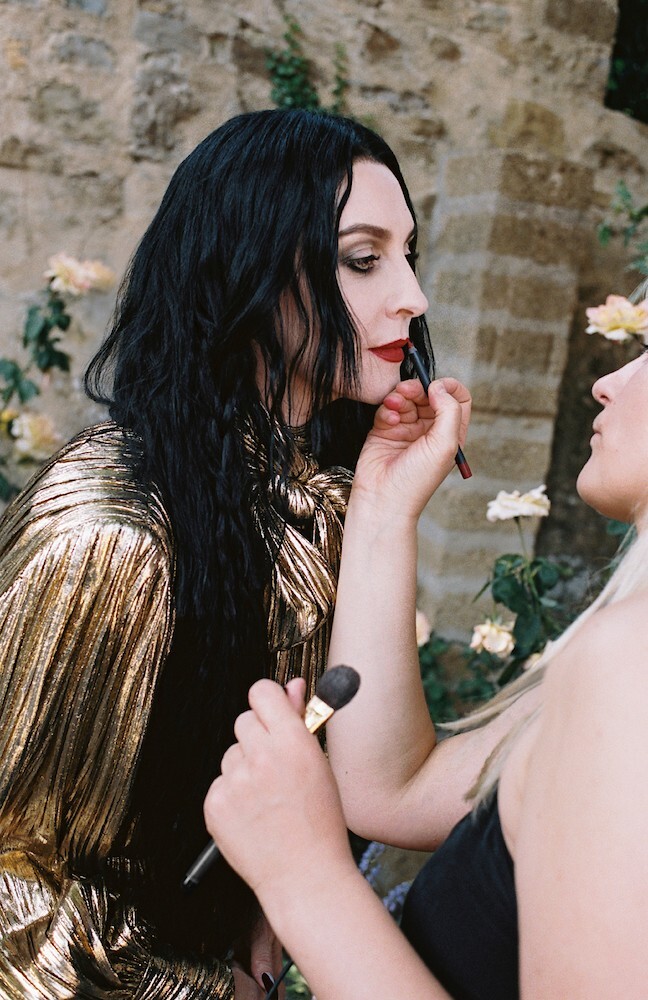 Flora Gorgeous Gardenia, помады Rouge à Lèvres Mat и лимитированная серия Rouge à Lèvres Lunaison, тушь для ресниц L’Obscur и матирующая пудра Poudre De Beauté Mat Naturel. Духи и декоративная косметика из коллекции Gucci Makeup представлены как участники рождественской театральной постановки.
