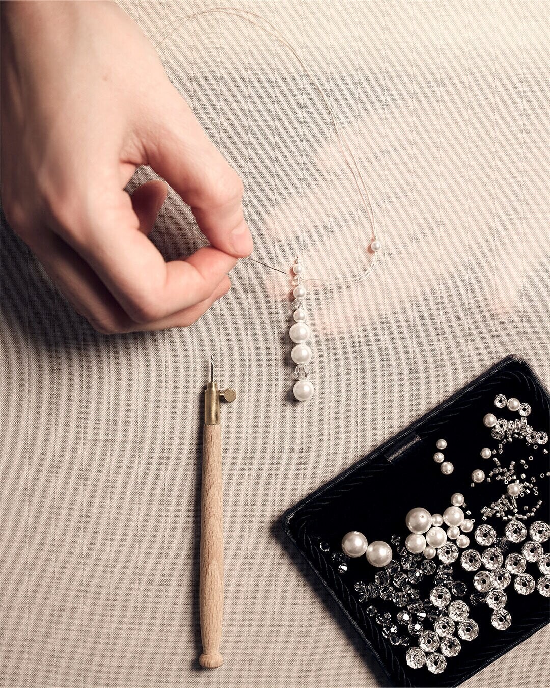 «В симфонии переливов и жемчужного сияния неизменная икона дома Guerlain, существующая уже почти 170 лет, облачается в изысканную вышивку, где жемчуг распускается полупрозрачным каскадом. Благодаря техникам вышивки исключительной сложности, флакон украшен жемчужным убранством – ярким созвездием сдержанной элегантности», – цитата Guerlain.
