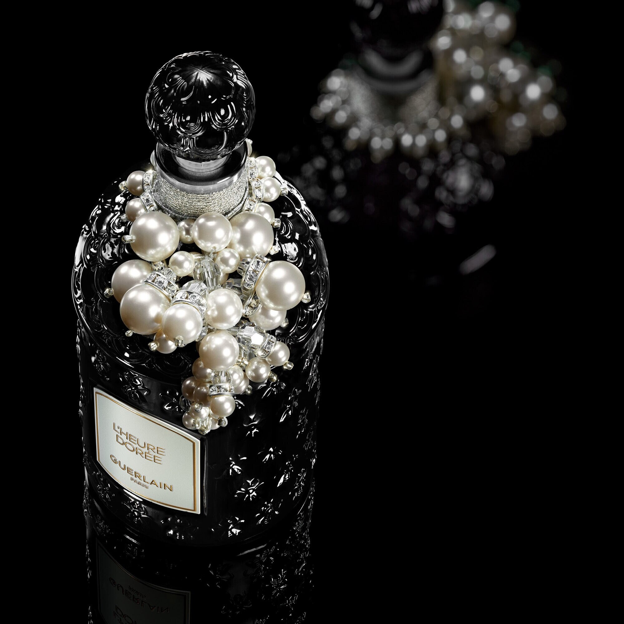 «В 2026 году Guerlain вновь представляют свой Rendez-Vous d’Exception, посвященный празднику Ид аль-Фитр – торжественному времени единения и солидарности, знаменующему окончание Рамадана. В коллекционном издании Millésime 2026 утончённое мастерство вышивальной студии Vermont встречается с ольфакторной смелостью парфюмеров Guerlain. Флакон, покрытый глубоким чёрным лаком, украшен каскадом жемчужин – это дань уважения восточным традициям, где жемчуг служит символом чистоты и элегантности», – гласит описание бренда.