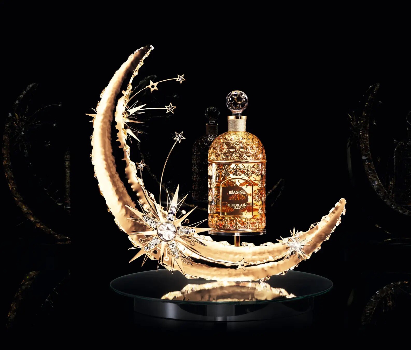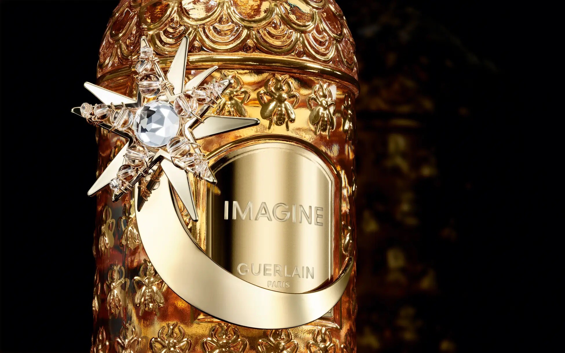 «Guerlain приглашают вас на эксклюзивное рождественское мероприятие с лимитированным изданием Imagine. В этот праздничный сезон, проходящий под знаком всего самого чудесного, Жеральдин Гонсалес раскрывает нам свою очаровательную и сияющую вселенную. В миллезиме 2025 года легендарный флакон Bee Bottle украшен сверкающей луной. Внутри заключена парфюмерная вода Imagine – пьянящий нектар, оставляющий за собой праздничный шлейф», – пресс-релиз Guerlain.