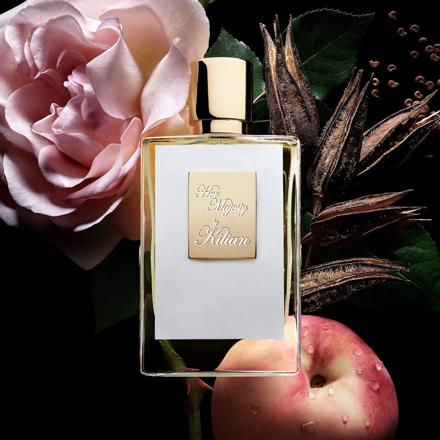 «Шипр – это знаковый аккорд, рождённый из слияния цитрусовых, цветочных и древесных нот. В композиции Her Majesty дом Kilian по-новому интерпретирует это уникальное парфюмерное семейство, придавая ему яркое, чувственное и современное звучание. В самом сердце аромата царит абсолют дамасской розы, смягчённый нежностью персика и оживлённый пьянящим дыханием рома. Семена амбретты раскрывают свой тёплый и чарующий мускусный магнетизм. В базе ноты папируса и кедра выстраивают отчётливый древесный шлейф. Поистине величественное творение, пребывающее в совершенной гармонии», – гласит пресс-релиз бренда.