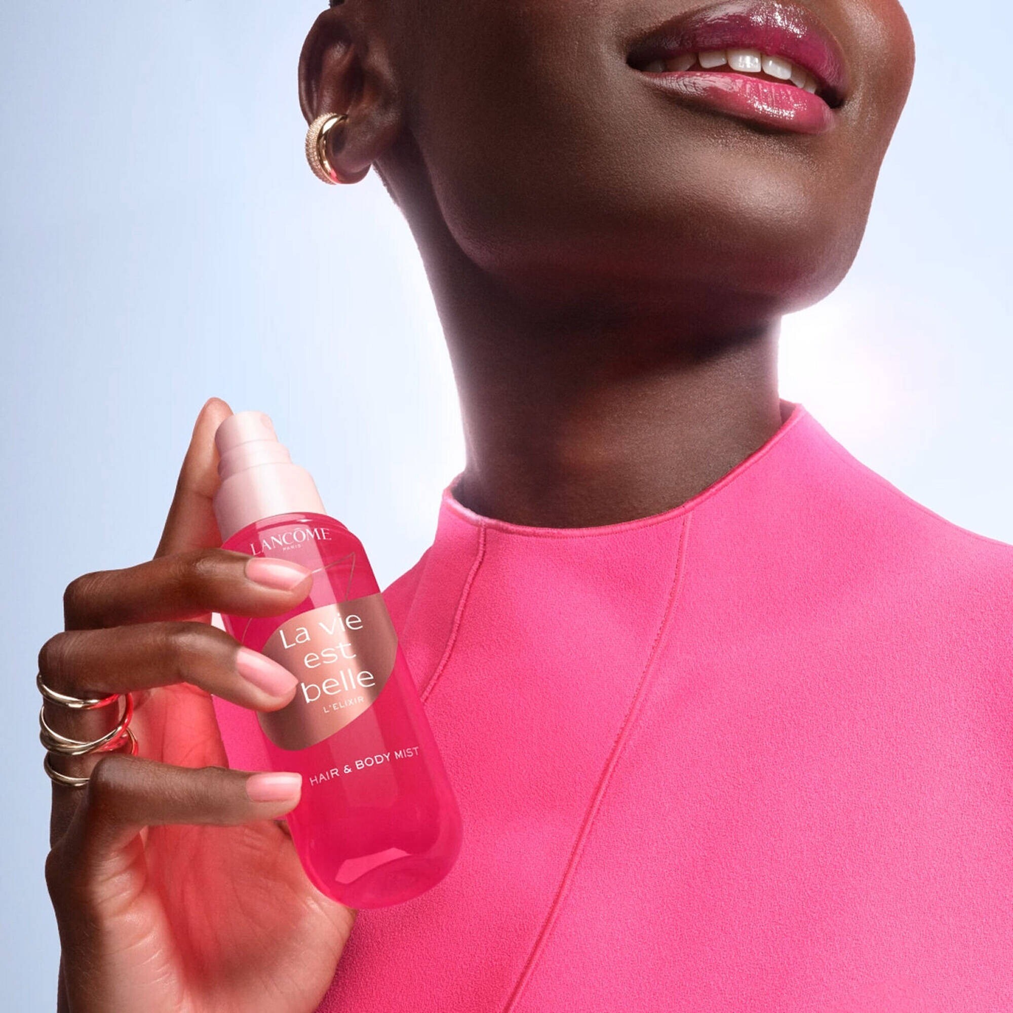 «Откройте для себя спреи La Vie Est Belle – изысканные дополнения к вашим любимым ароматам. Красочный, элегантный флакон создан для того, чтобы носить его с собой повсюду, обновляя ваш аромат в течение дня. Наносите его на кожу, волосы или освежите одежду – в любое время и в любом месте. Выбирайте лёгкое распыление для быстрого освежающего эффекта или более обильное – для глубокого, роскошного и чувственного наслаждения» – Lancôme.