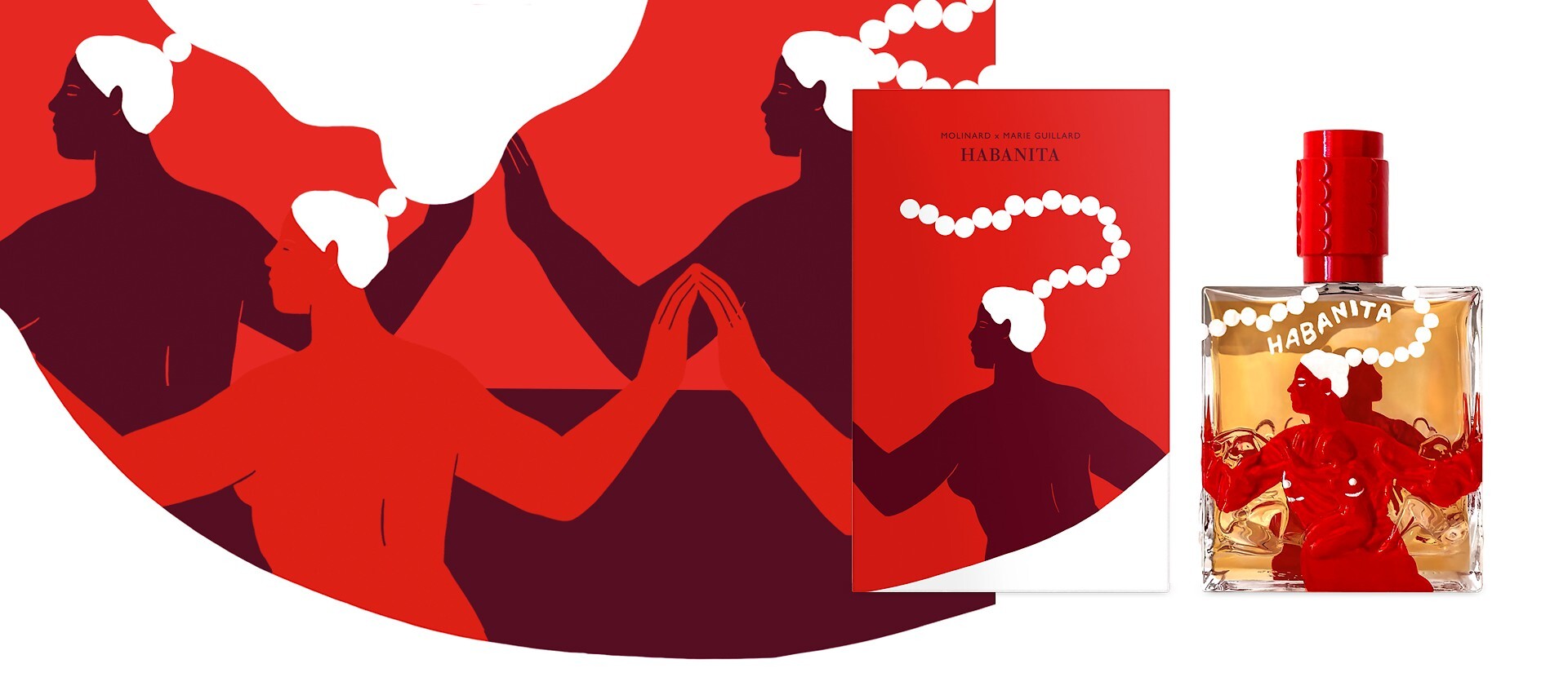 «По случаю этого юбилея мы пригласили французскую художницу Мари Гийяр, переосмыцсляющую вселенную Habanita. Вдохновившись фризом Рене Лалика "Вакханки", Мари предложила новую интерпретацию дизайна флакона: две женские фигуры, кружащиеся в чувственном и мистическом танце. Дань уважения трансгрессивному и сладострастному характеру аромата Habanita в образе абсолютно свободных, смелых и страстных женщин. Мари Гийяр — иллюстратор из Бордо, которая сейчас живёт и работает в Париже. В её работах можно найти множество самых разных образов, вдохновлённых, например, аппликациями Матисса или сатирическими клише фотографий Мартина Парра. Реализм — не та тема, которая интересует Мари; её творчество —искажение реальности, перспективы и несовершенные пропорции» — описание бренда Molinard.