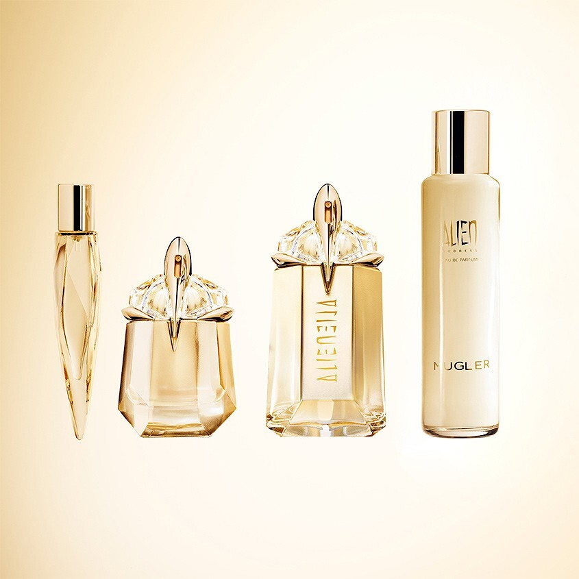 Alien, который выпустили в 2005 году, отличие Alien Goddess — золотой оттенок. Как и другие ароматы Mugler, новинку можно будет пополнять на рефил-станциях Mugler Fountain.