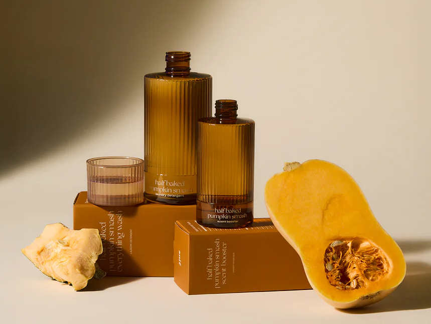 – концентрат Half Baked Pumpkin Smash Scent Booster, предназначенный для придания дополнительного аромата тканям. Бренд рекомендует использовать продукт вместе со средством для стирки, чтобы создать максимально стойкий аромат (27$ за флакон объёмом 250 мл);
