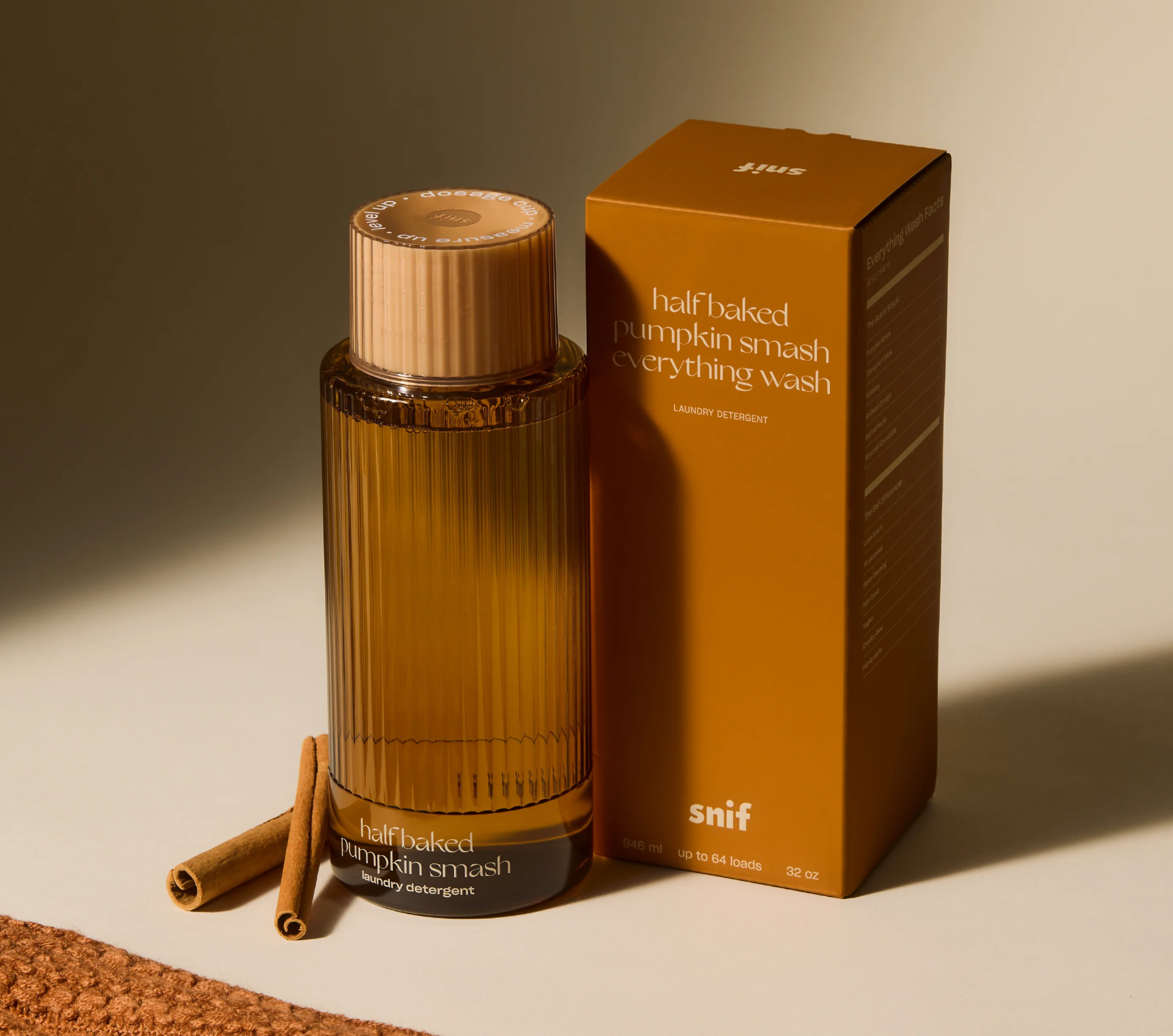 – универсальное моющее средство для стирки The Half Baked Pumpkin Smash Everything Wash, удаляющее загрязнения и неприятные запахи, а также придающее тканям тёплый пряный аромат (475 мл – 19$, 946 мл – 32$);