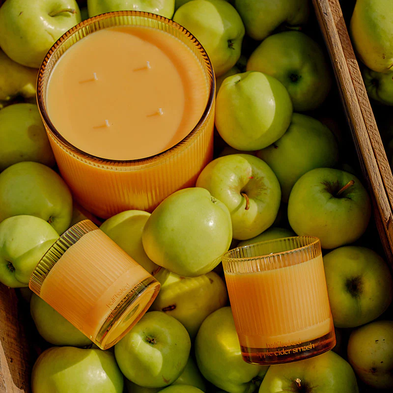 Душистые свечи с ароматами Half Baked Pumpkin Smash и Half Baked Apple Cider Smash представлены в стеклянных ёмкостях в трёх вариантах объёма: 180 мл (34$), 240 мл (46$) и 1400 мл (129$).